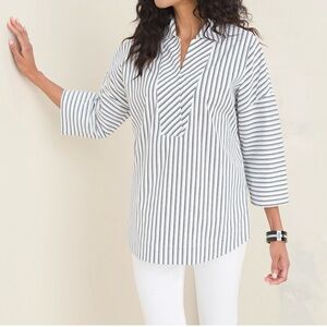 ANATOMIE Made in Italy Mesh Button Long SLV Contemporary City-Chic White Top M