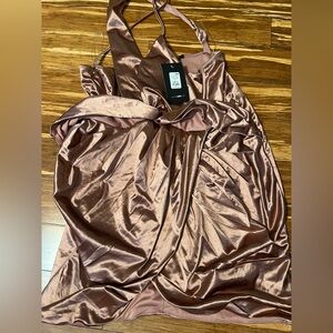 Chic satin dress in a rich copper hue. Ideal for stylish events.