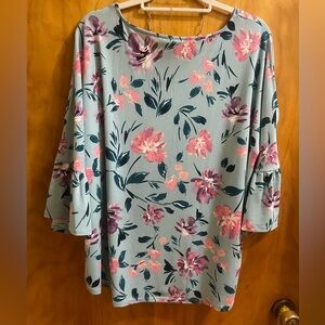 Chic floral blouse with vibrant colors. Features a relaxed fit and stylish sleeves. Perfect for any occasion.