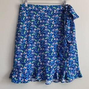 LOFT Blue Floral Faux Wrap Ruffled Skirt Size 4 (Measures like a 6)