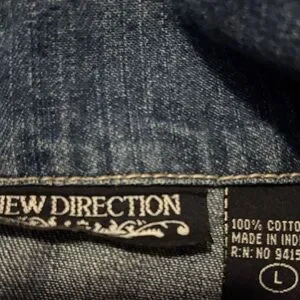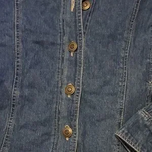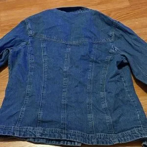 Stylish New Directions jean jacket. Features a classic blue denim look. Button-up front with a casual fit.