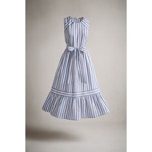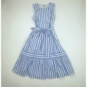 J.Crew Factory 100% Cotton Tiered Midi Dress Women's Size 4P Blue & White Stripe