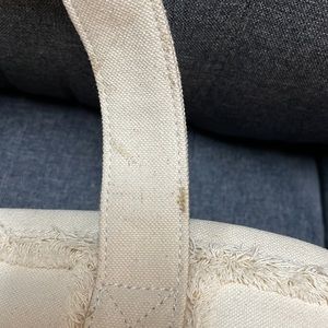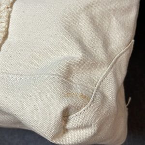 Great condition. Couple spots. Sturdy thick roomy canvas. Open top. Interior pockets.