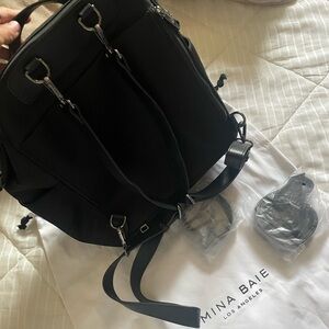 Black Mina Baie Stevie Midi Diaper Bag Nylon