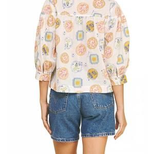 The Amalfi Print Button Down Top by PINCH effortlessly combines style and comfort, perfect for versatile dressing. This women's blouse is crafted from 100% cotton and features a flattering V-neck with elegant three-quarter sleeves. Closure is via a convenient button front, ideal for spring workwear or travel occasions. Care instructions recommend machine washing and hanging to dry. Model is styled in a size small.