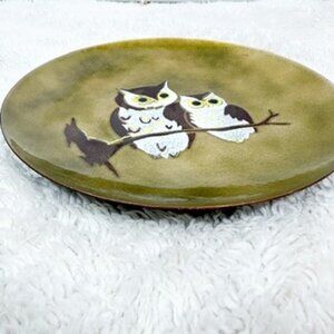 Handcrafted Enamel on Copper Owl Plate 7" Bovano Cheshire Conn USA Vintage MCM