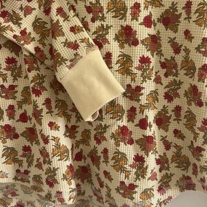 Embrace a touch of nature with this waffle knit floral long sleeve top. Perfect for casual outings and layering this cream and red top adds a pop of color to your wardrobe. Warm waffle knit is also great for layering for winter sports/snow sports such as skiing or snowboarding