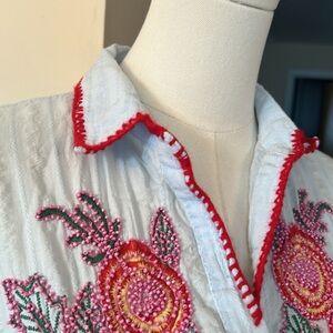 VELZERA Embroidered Beaded Tunic Top size medium