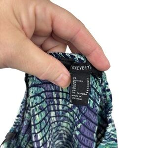 Embrace the casual elegance of this Forever 21 sundress, featuring a sleeveless, strapless design in a captivating blue and green palette. Perfect for resort wear, the dress boasts a flowing silhouette with a fitted bodice and a lightweight fabric ideal for warm weather adventures.