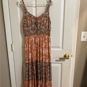 Short sleeve tee with Bronco graphic. Earthy tones and floral accents. Casual and stylish.