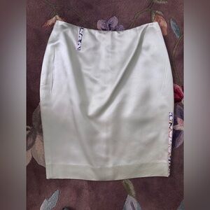Purple mink bow accents at vamps and stacked heels. Includes dust bag.