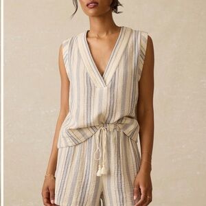 Elevate your summer wardrobe with these stylish striped shorts. Featuring a chic tan and blue design, they offer both comfort and fashion. Perfect for casual outings.