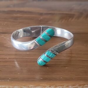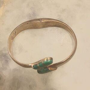 Signed Vintage Mexico Taxco Malachite 925 Sterling Silver Bangle Bracelet Cuff