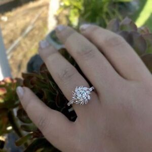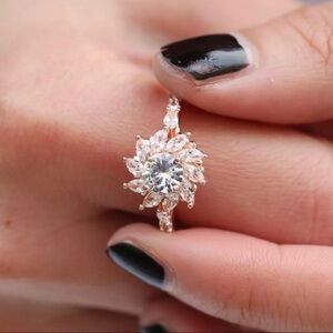 18K Rose Gold Plated Flower Ring – Simulated Diamond Cluster