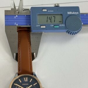 Elevate your style with the Fossil Rye Multifunction Watch, a sophisticated accessory for the modern woman. Its striking blue dial is framed by an elegant rose gold bezel, complemented by Roman numerals and baton indexes for a touch of classic refinement. The brown leather strap provides comfortable wear and timeless appeal, while the stainless-steel case ensures durability.