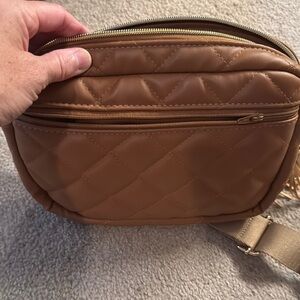 Makeup Junkie leather Quilted Brown Crossbody Bag