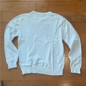 Barely worn - one small spot (shown in photo) will attempt to remove. Gorgeous cotton ACK sweater, showcasing a striking American flag design. Crafted from a soft knit material, this sweater offers both comfort and a classic look. The crew neckline and long sleeves make it a versatile addition to any wardrobe, perfect for casual outings.