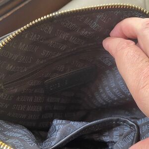 The Steve Madden crossbody bag showcases a captivating floral design in pink and blue hues, perfect for adding a touch of elegance to your ensemble. Crafted with attention to detail, this bag combines style and functionality, making it an ideal choice for everyday use. Its compact size and adjustable strap offer convenience and comfort, while the vibrant pattern ensures you stand out in any crowd.
