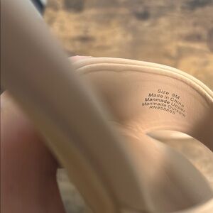 Step into style with these elegant tan slide sandals from . Perfect for any occasion, these shoes offer both comfort and sophistication. Size 8. Never worn.
