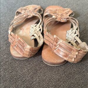Embrace effortless style with these tan leather sandals from Free People, featuring a minimalist design with thin straps and flat soles. Crafted from soft, genuine leather, these sandals offer a natural, slightly textured finish, perfect for casual summer outings.