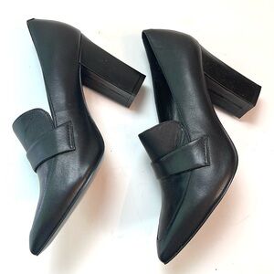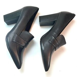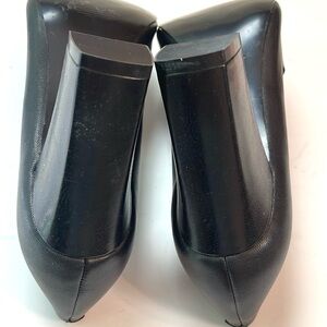 Elegant black leather heels with a pointed toe and sturdy 3 1/4” block heel. Padded Insole. Perfect for any occasion. New without Box … Never Worn