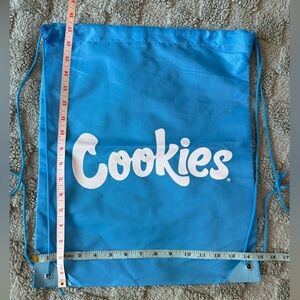 NWOT Bright blue drawstring bag backpack with Cookies logo.