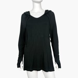 • Hooded neckline with drawcords
