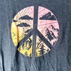 β’ Graphic: Peace sign with mountain scene in vibrant colors