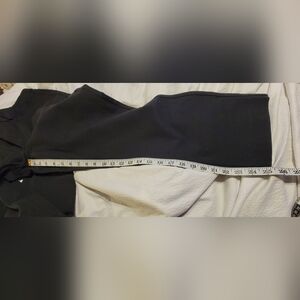 Elevate your wardrobe with these sleek black cropped pants. Perfect for any occasion, they offer a stylish and comfortable fit. see photos for waist. drop and inseam. back pockets faux.