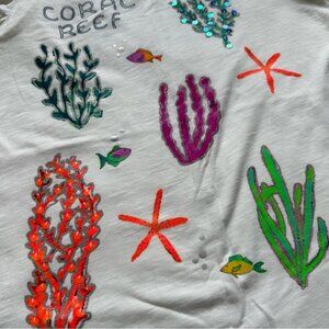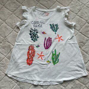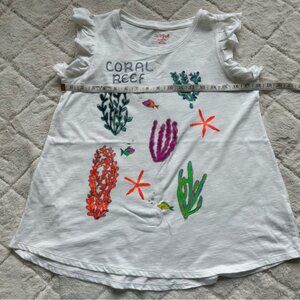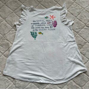 Cat & Jack | White Short Sleeve Ruffle Coral Reef Tee | Size Extra Large (14-16)