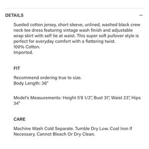 Rails Edie Black Cotton Hersey Wrap Waist T- Shirt Dress, Small