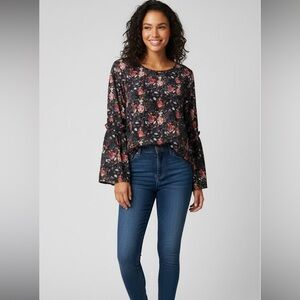 Saks Fifth Ave Women’s floral bell sleeve blouse size medium