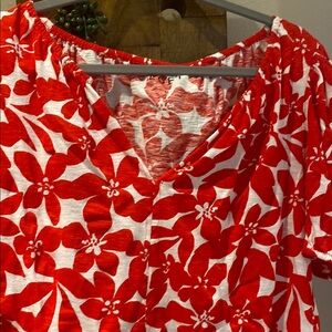 LOFT Red and White Ruffled Pulmeria floral Blouse