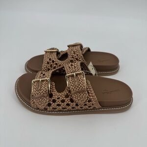 Universal Thread Women's Tan Kylie Woven Two Band Footbed Sandals Size 8.