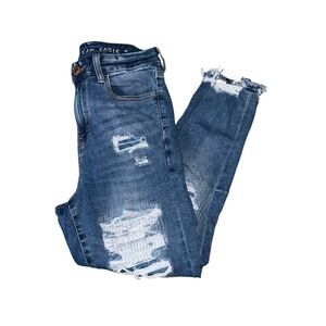 Stylish and comfortable, these American Eagle Outfitters distressed jeans are perfect for a casual look. The classic blue color adds versatility to your wardrobe.