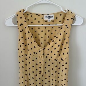 Step into the sun with Rouje's vibrant yellow sundress, designed for effortless resort wear. This sleeveless midi dress features a flattering scoop neckline and a playful polka dot pattern, perfect for casual outings. Its breezy style and cheerful color make it a must-have for warm, carefree days.