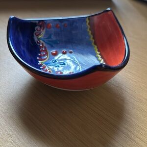 Vtg Spain Del Rio Salado Bowl Trinket Curved Dish Hand Painted Ceramic Pottery