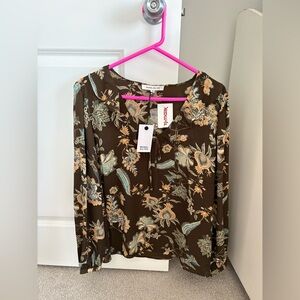 This vibrant blouse from Sienna Sky features a striking combination of blue and orange hues, enhanced with a smocked back. I love this blouse…just a little too cropped for me. NWT!