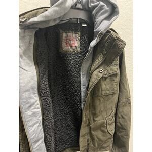 Levi's Men's Washed Cotton Hooded Sherpa Military Jacket
