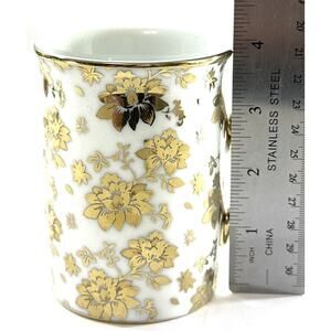 OlAff Porcelain Mug Set Gold Floral 4” Tall with Box