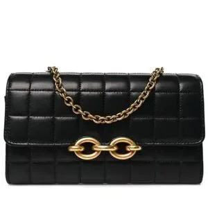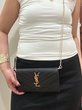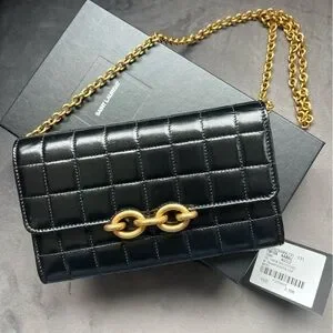 YSL Lambskin Carre Quilted Le Maillon Wallet On Chain Black