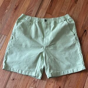 MENS Stoic brand lime green canvas cotton carpenter shorts have an elastic waist band to stay comfortable in style. Great for workwear or Summer's outside on the go! Side pockets & back pockets with a cool retro back pocket detail. Gender neutral style, men's size XL.