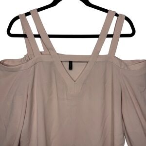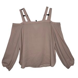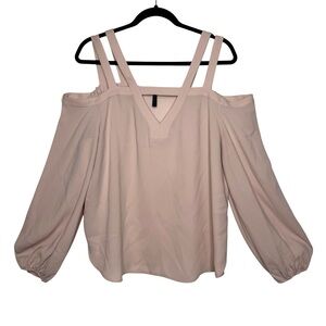 BCBGMAXAZRIA Tina Bare Pink Woven Exposed Shoulder Subtle balloon sleeve top Lg