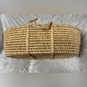 Natural woven rattan basket with sturdy handles. Perfect for storage, gift basket or decor.