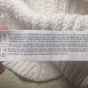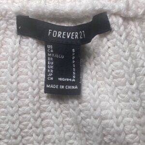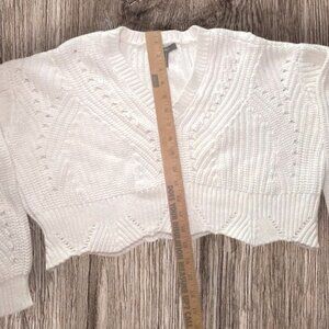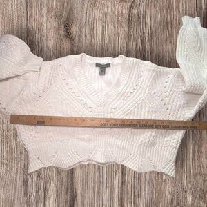 Forever 21 White Knit Cropped Sweater With V-Neck & Long Sleeves Cotton Blend