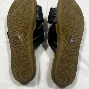 White Mountain Black Leather Bow Slide Sandals