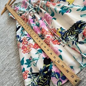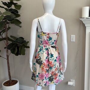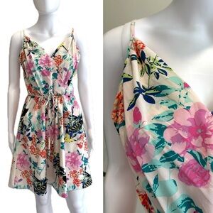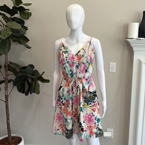 Yumi Kim Floral Bird Print Sundress Size Small Faux Wrap Tie Waist Pocket Dress