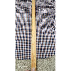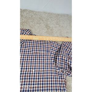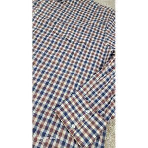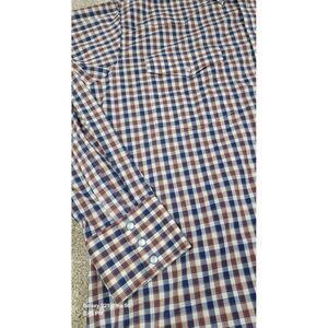 This Wrangler Shirt is a men's size 2XL in a classic fit, featuring a red and blue plaid pattern with pearl snap closures and a collared neckline. Made from a blend of polyester and cotton, this button-up shirt is designed with long sleeves, making it suitable for all seasons. The western-themed shirt is lightweight, easy to care for, and has pockets, making it versatile for travel, parties, casual outings, or workwear. Perfect for those who appreciate a classic western style with a modern twist.
