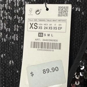 Zara Black Sequin Dress with Floral Accents size XS NEW