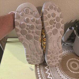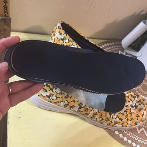 Step into comfort and style with these floral yellow slip-on shoes. Perfect for casual outings, these shoes offer a blend of fashion and function.